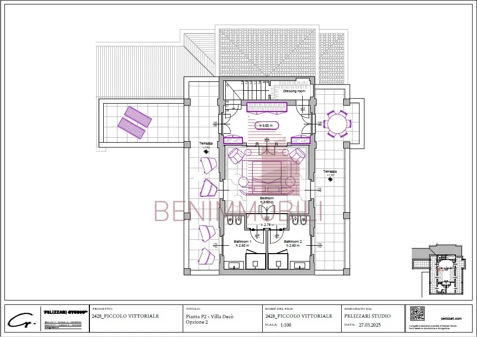 Piano Secondo: suite padronale con ampia cabina armadio, bagno en suite e due meravigliose terrazze.