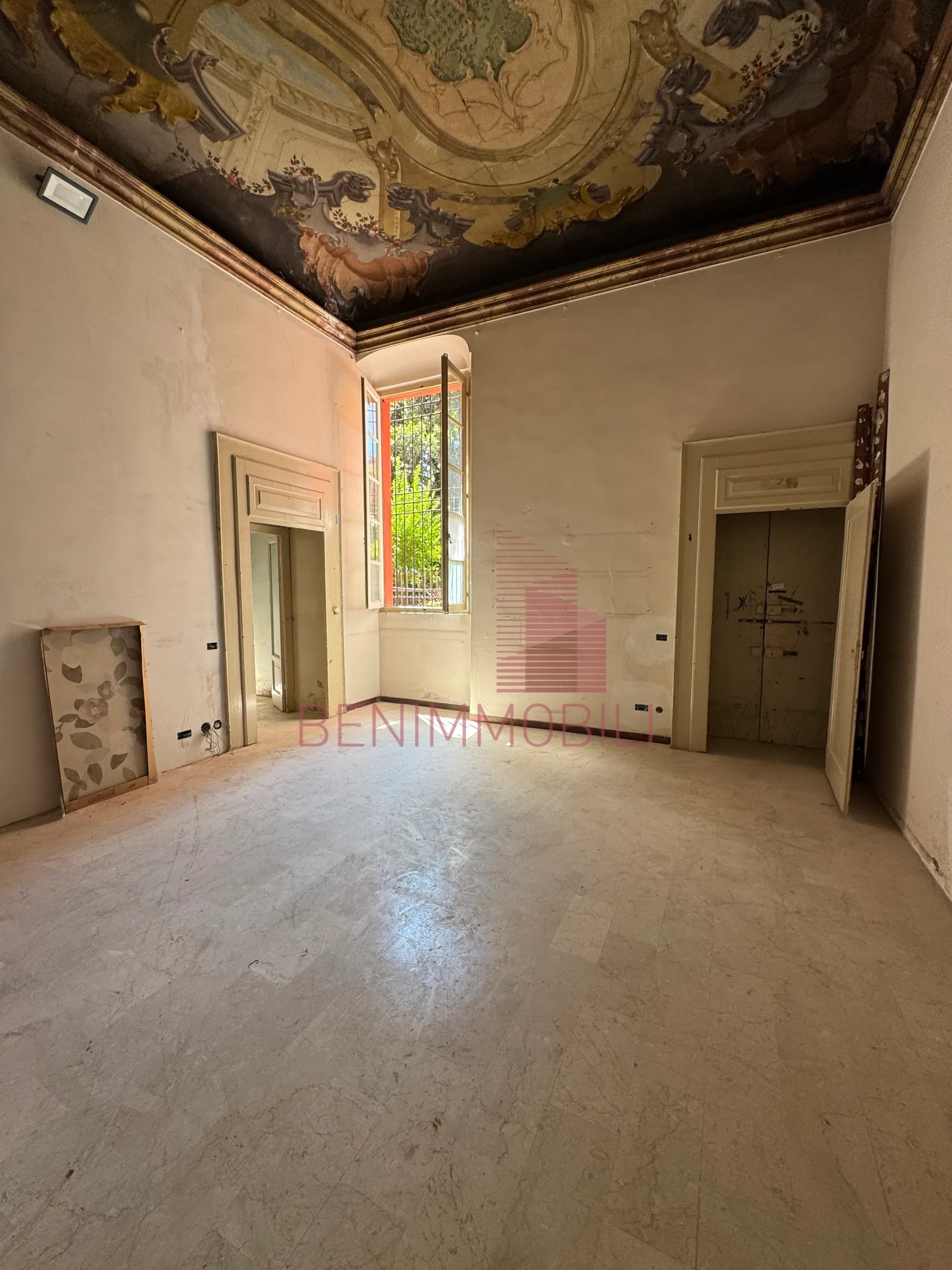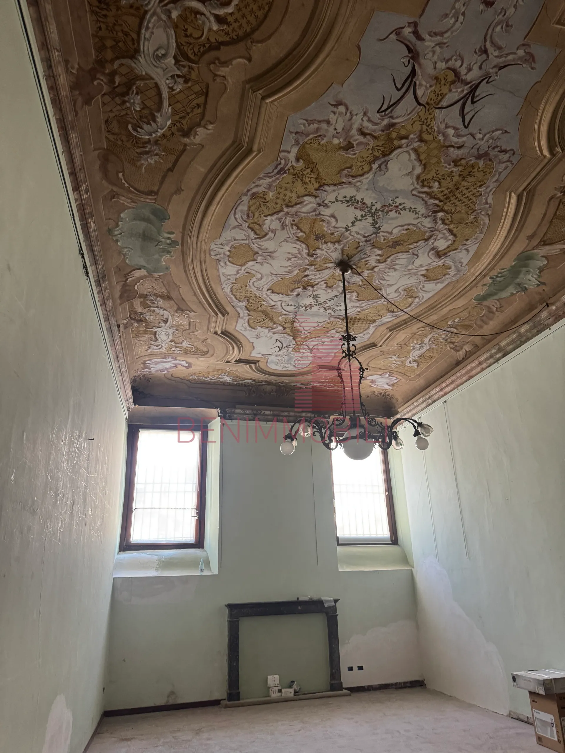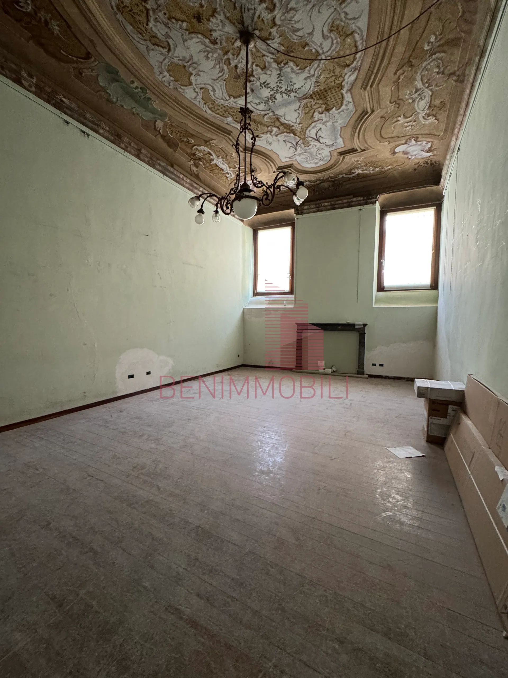 L'immobile si compone di tre ampi locali oltre a servizio completo di doccia ed è caratterizzato da soffitti molto alti con affreschi originali che conferiscono un'atmosfera di charme e di grande rappresentanza.